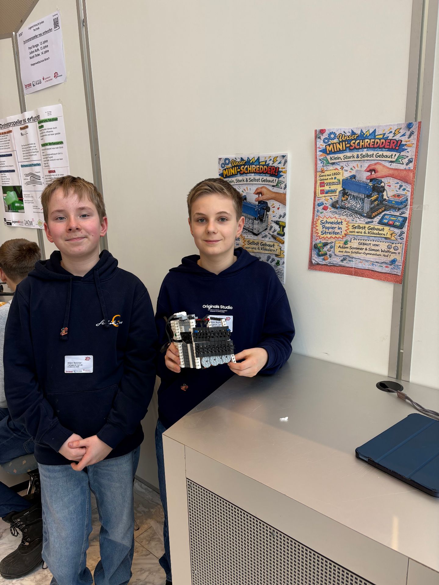 Dieses Team entwickelte einen Mini-Schredder, der aus Lego gebaut wurde. Die Klingen des Schredders wurden mithilfe eines 3D-Druckers hergestellt. Zudem programmierten die Teilnehmer eine Software zur Steuerung des Geräts.