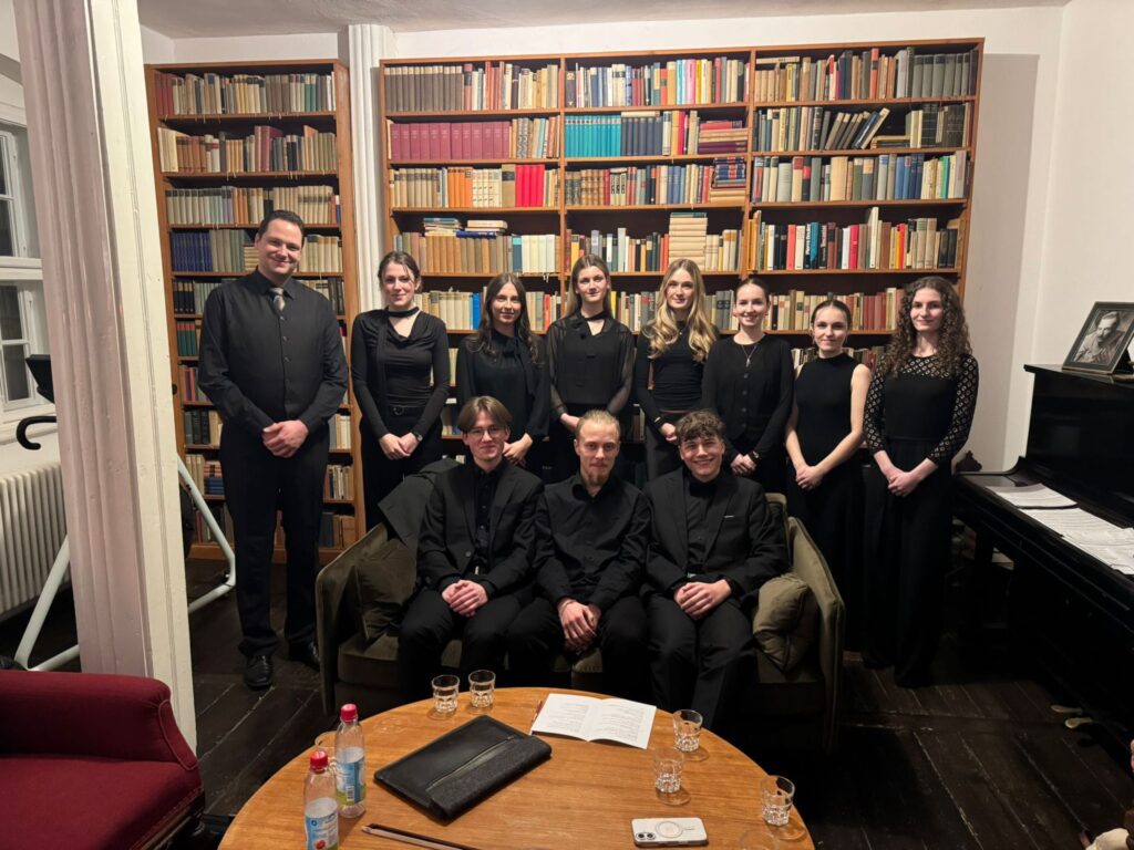 Am Samstag, den 14.03.2026 durfte das Kammermusikensemble und der „Dreigesang“ Hanna, Mia und Saphira Lutsch-Kelemen unter der musikalischen Leitung von Martin Röder ein ganz besonderes Konzert geben: Schlossherr Louis von der Borch lud die Ensembles zu einem seiner beliebten „Sophienreuther Schlosskonzerte“ ein, damit sie dort im Konzertsaal des Schlosses einen ganzen Abend unter dem Motto „Eine musikalische Wunderkiste“ gestalten. Und so entstand ein sehr abwechslungsreiches Programm in ganz unterschiedlichen Besetzungen. Berühmte Filmmusiken erklangen, zum Beispiel aus „Forrest Gump“ oder aus „Der Pate“, Meisterwerke klassischer Musik wie Schostakowitschs „Walzer Nr.2“, Mendelssohns a capella vorgetragenes „Hebe deine Augen auf“, verschiedene Tangos wie Piazzollas „Libertango“, aber auch Rock-/Popmusik in Gestalt der „Bitter Sweet Symphony“. Nicht wenige Zuhörerinnen und Zuhörer hatten Tränen in den Augen und quittierten das Konzert mit großem Beifall und sogar Standing Ovations. Auch das beeindruckende Ambiente des Schlosses trug zum großartigen Gelingen bei: Vor dem offenen Kamin gab es in der „Trinkhalle“ raffinierte Häppchen und Getränke, sowie tolle Gespräche. Kurz und gut: Ein rundum gelungener Abend!