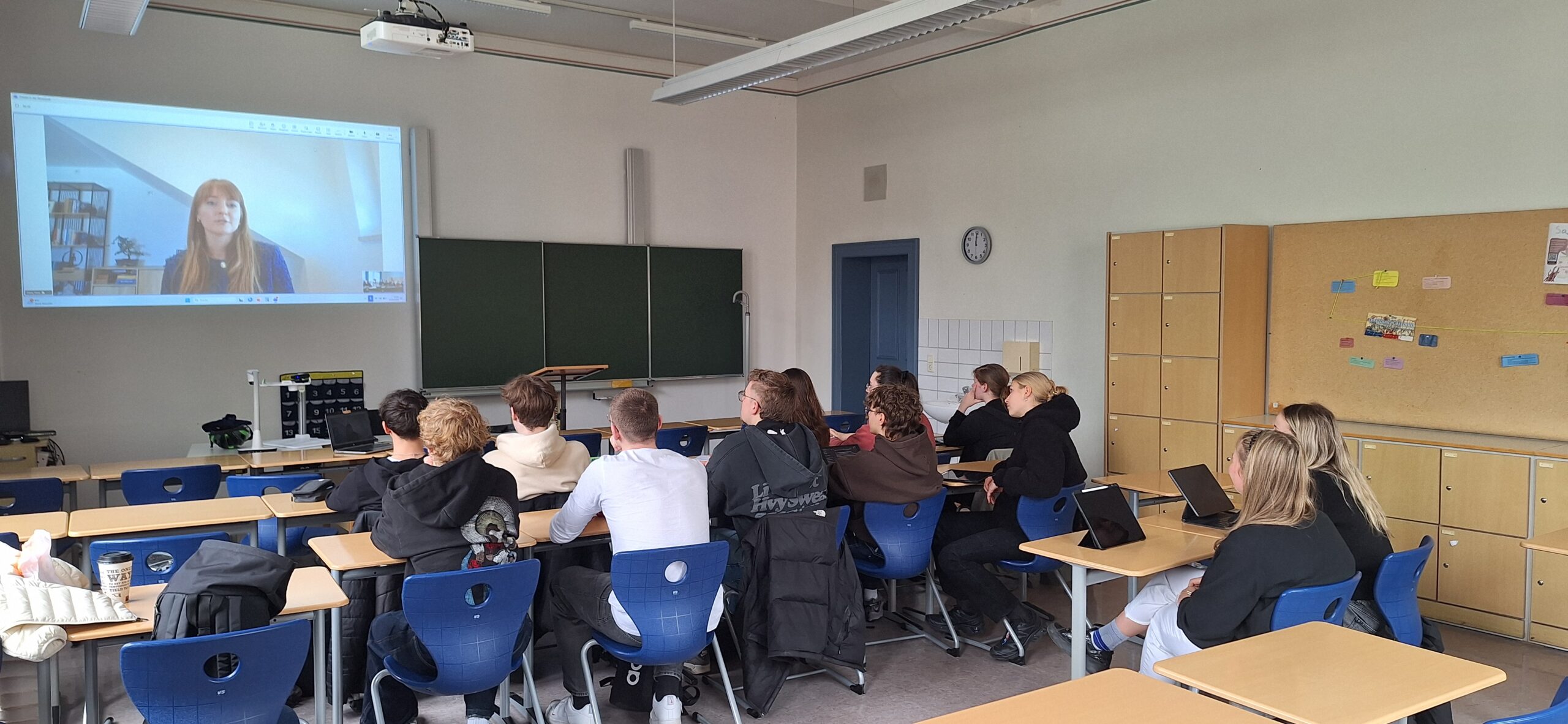 In einer neuen Vortragsreihe, die für das W-Seminar „KI“ von Herrn Spieler organisiert wird, geht es in diesem Schuljahr um Frauen in Wissenschaft und Wirtschaft. Den Anfang machte die erfolgreiche Managerin Inna Dietz. Zugeschaltet aus München, erzählte die Senior Managerin der Weltfirma Mondelez (Milka, Oreo, Philadelphia, Toblerone, Tuc, usw.), wie ihr beruflicher Werdegang war, wie sie mit Ablehnung und ihrer Rolle als Frau in einer Führungsposition umgeht. Wie sie ihr Weg von einem kleinen Ort in der Südukraine, über Kiew, wo sie mit 17 alleine zum Studieren hinging, zu Microsoft, der Allianz, LinkedIn und anderen Weltkonzernen führte.